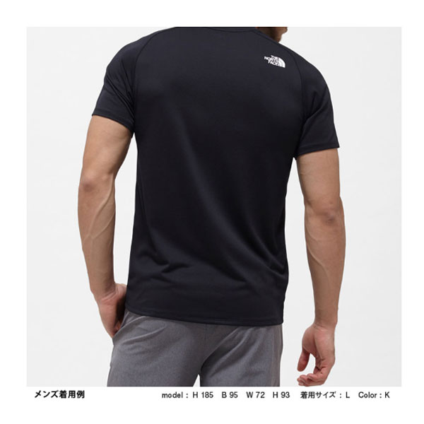 ノースフェイスショートスリーブGTDロゴクルー(メンズ) ブラック SNT31970【Fabric】 FLASHDRY Light Mesh(ポリエステル100%)【Function】吸汗・速乾 肌面ドライタッチ編組織/ポリジン加工(銀イオンによる抗菌防臭機能)サイズ S着丈65 身幅48 裄丈38 裾幅46 袖口幅15