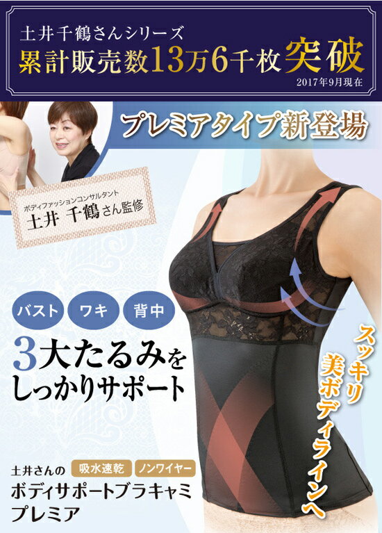 土井さんのボディサポートブラキャミ プレミア 土井さんのボディーサポートブラキャミが進化! 【土井さんのボディサポートブラキャミ プレミア】正規品 背筋が丸まった姿勢が原因でバストが下がってきたりワキ肉が出てきたりしていませんか? そんな方におすすめのバスト・ワキ・背中の3大たるみをしっかりサポートしてくれる補正下着「土井さんのボディサポートブラキャミ プレミア」です。